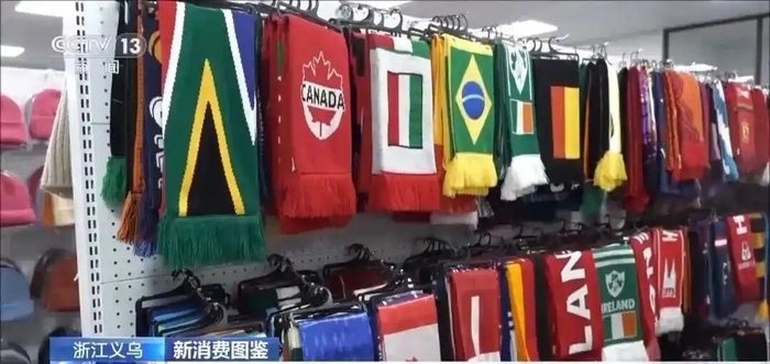 回顾以往世界杯,每一届都为义乌市场带来了可观的流量和出口增长。根据义乌体育用品协会估算,上一届卡塔尔世界杯32强锁定后,“义乌制造”几乎占到世界杯周边商品市场份额的70%。